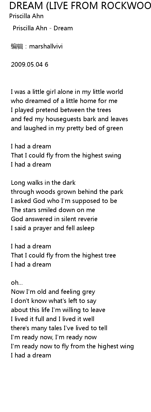 | Song | DREAM (LIVE FROM ROCKWOOD MUSIC HALL) |