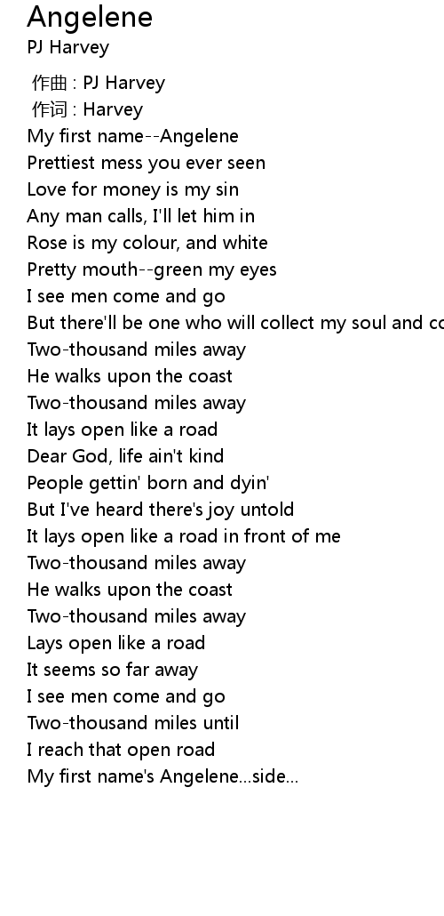 | [00:00.00] | zuò qǔ : PJ Harvey |