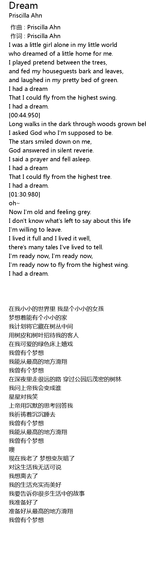 | [00:01.00] | zuò cí : Priscilla Ahn |