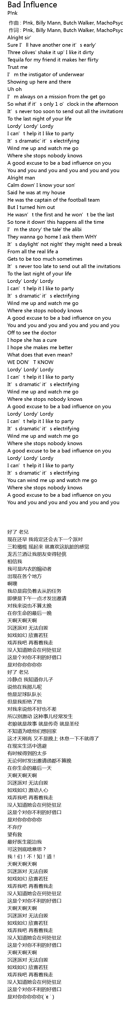 | [00:01.00] | zuò cí : P! nk, Billy Mann, Butch Walker, MachoPsycho |