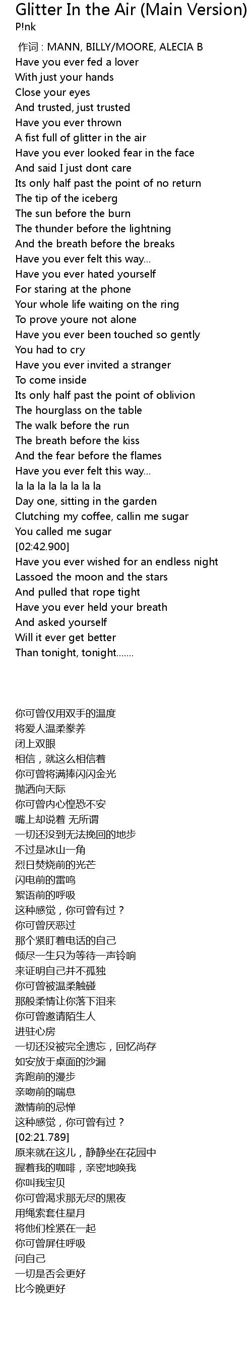 | [00:00.00] | 作词 : MANN, BILLY/MOORE, ALECIA B |