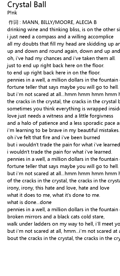 | [01:06.13] | the cracks in the crystal, the cracks in the crystal ball. |