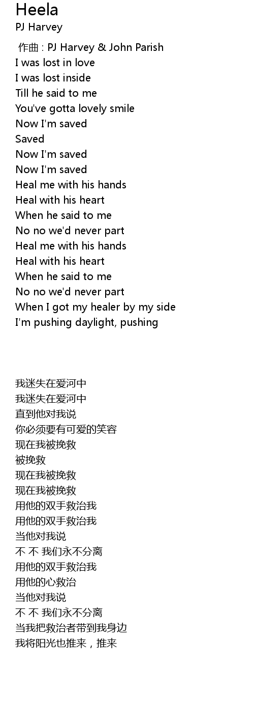 | [00:00.00] | 作曲 : PJ Harvey & John Parish |
