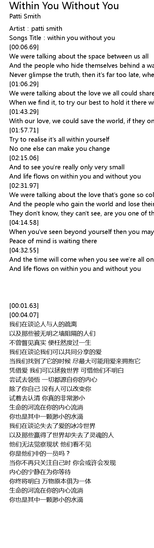 | [00:04.07] | Songs Title: within you without you |