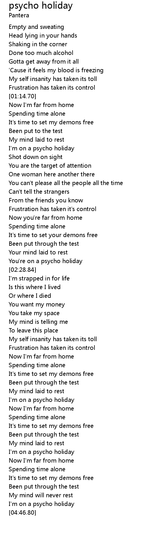 I'm on a psycho holiday |