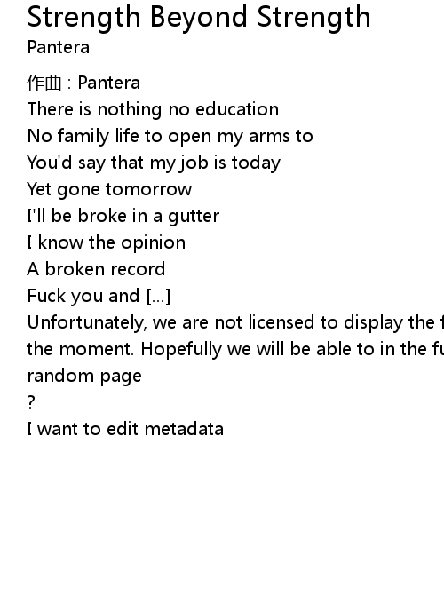| Unfortunately, we are not licensed to display the full lyrics for this song at the moment. Hopefully we will be able to in the future. Until then, how about a | |