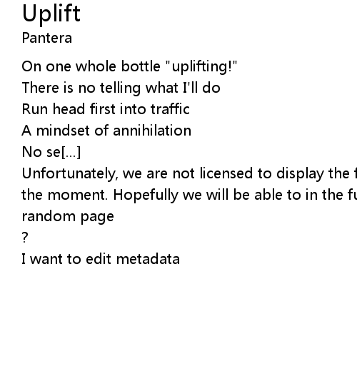 | Unfortunately, we are not licensed to display the full lyrics for this song at the moment. Hopefully we will be able to in the future. Until then, how about a | |