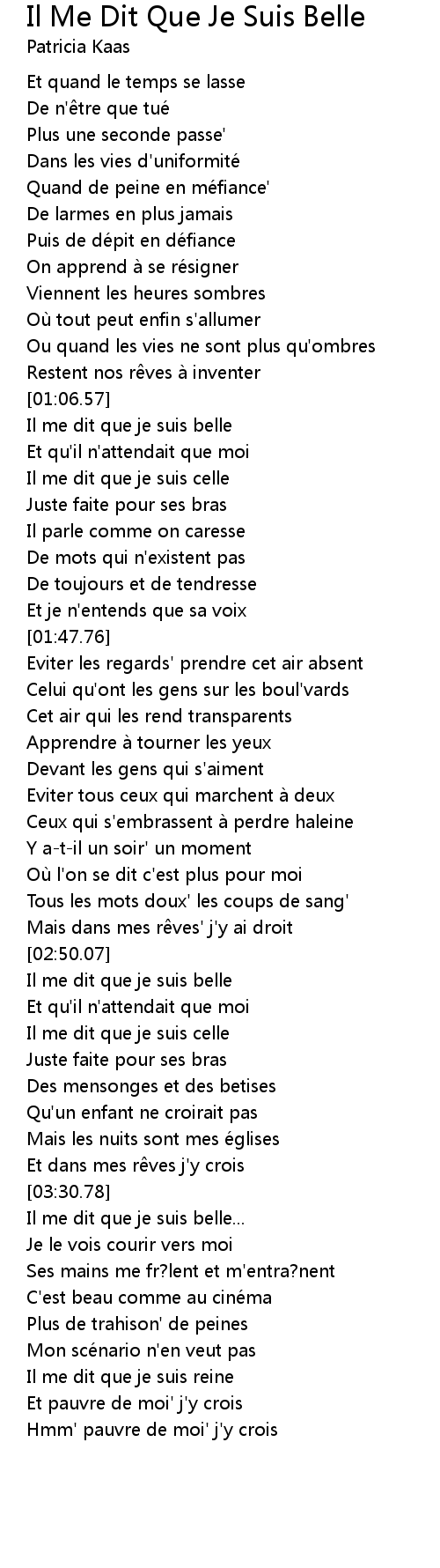 | [03:27.76] | Et dans mes rêves j'y crois |