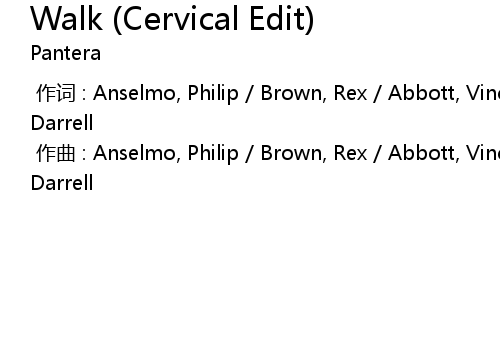 | [00:00.000] | 作曲 : Anselmo, Philip / Brown, Rex / Abbott, Vincent / Abbott, Darrell |
