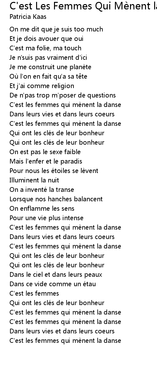 | Song | C'est Les Femmes Qui Mènent la Danse |
