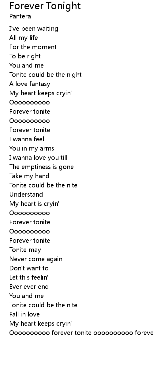 | Oooooooooo forever tonite oooooooooo forever tonight |