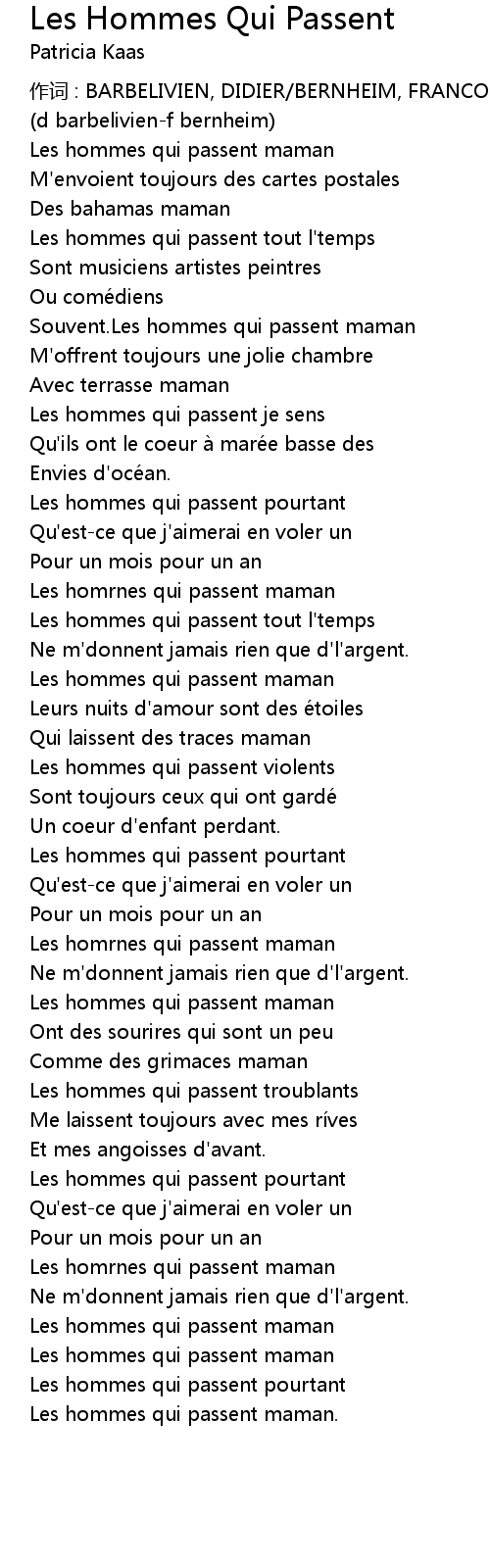 | 作词 : BARBELIVIEN, DIDIER/BERNHEIM, FRANCOIS | |