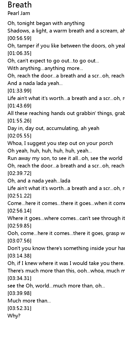 Life ain't what it's worth...a breath and a scr...oh, reach the door |
