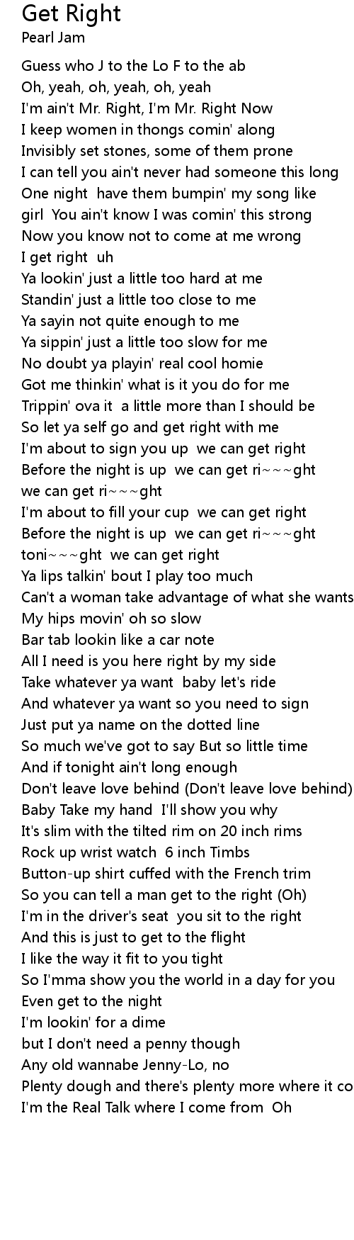I'm ain't Mr. Right, I'm Mr. Right Now |