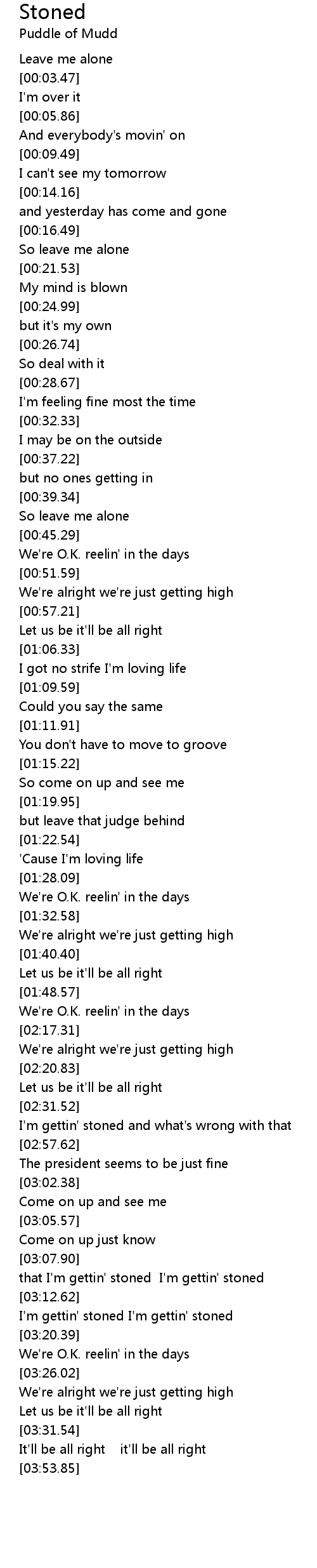 that I'm gettin' stoned I'm gettin' stoned |