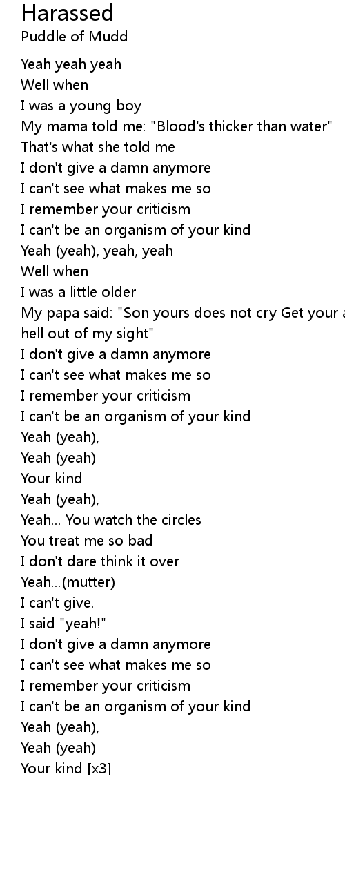 My papa said: "Son yours does not cry Get your act together boy Then get the hell out of my sight"