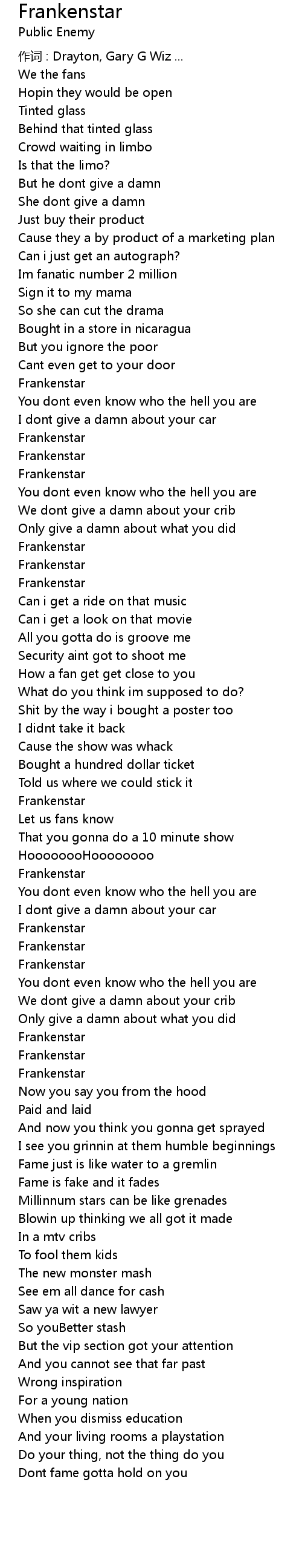 | Song | Frankenstar |