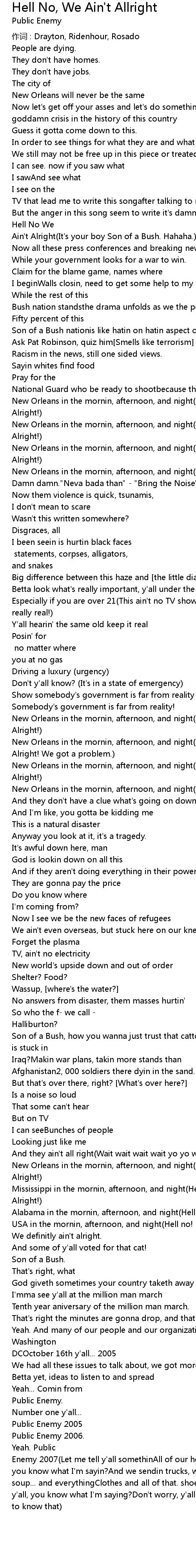 | New Orleans in the mornin, afternoon, and night Hell no! Hell no. We Ain' t Alright! We got a problem. | |