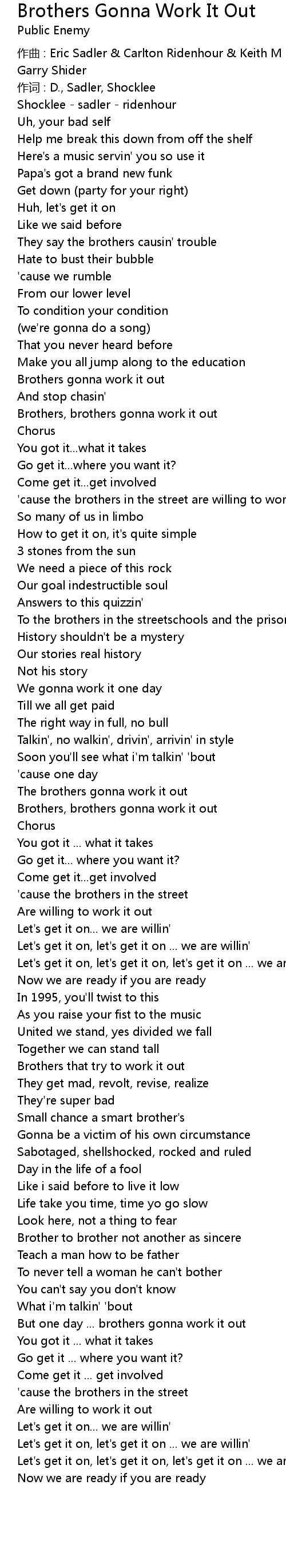 | Brothers, brothers gonna work it out | |