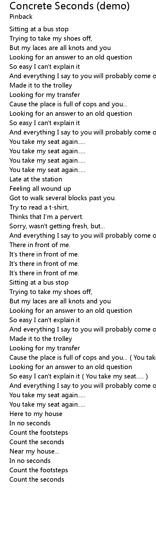 Cause the place is full of cops and you... ( You take my seat again..... )
