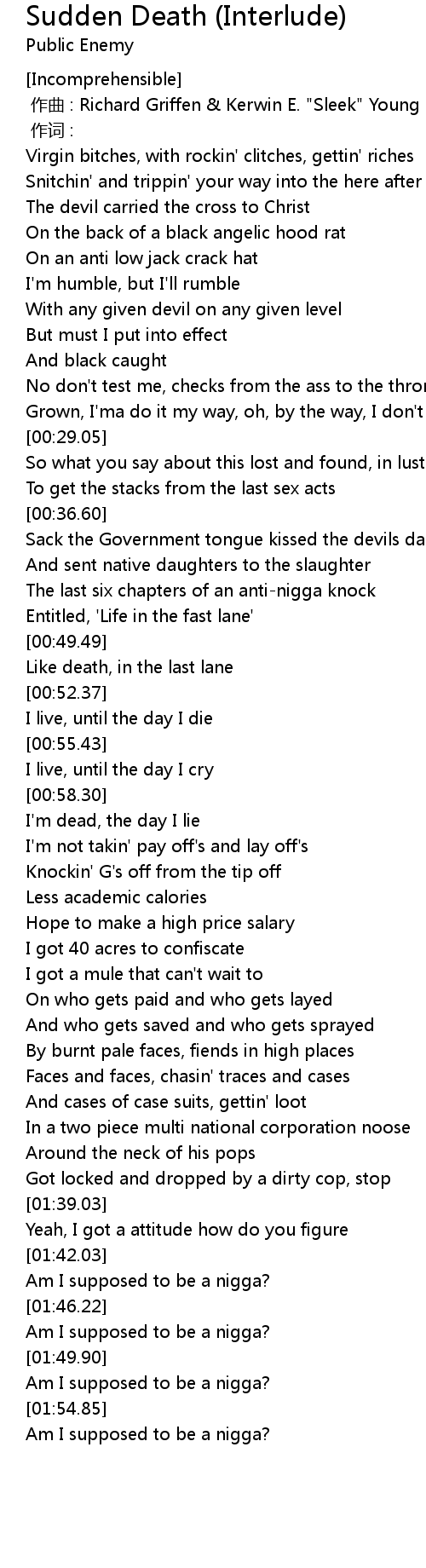| [01:43.66] | Am I supposed to be a nigga? |