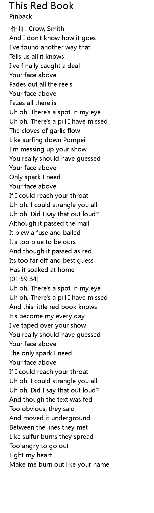 | [00:51.94] | Uh oh. There' s a pill I have missed |
