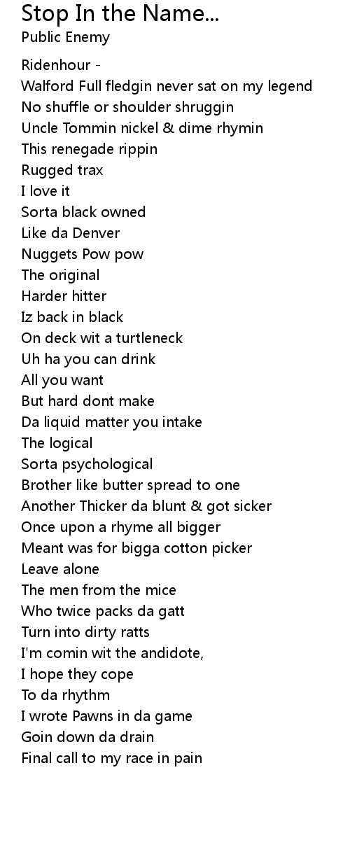 Song Stop In the Name...