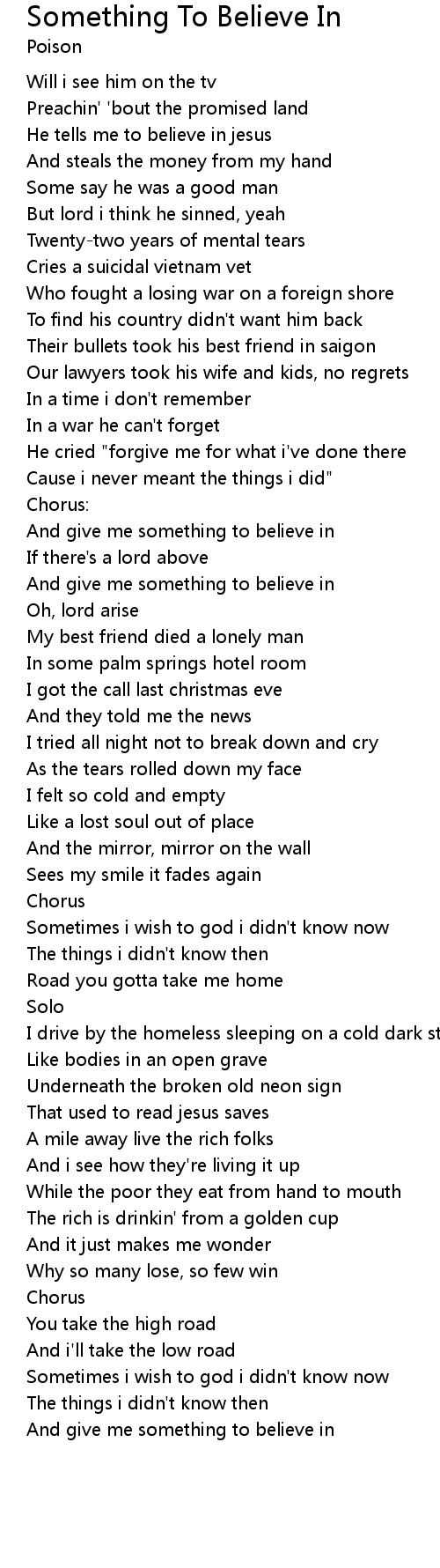 | And give me something to believe in | |