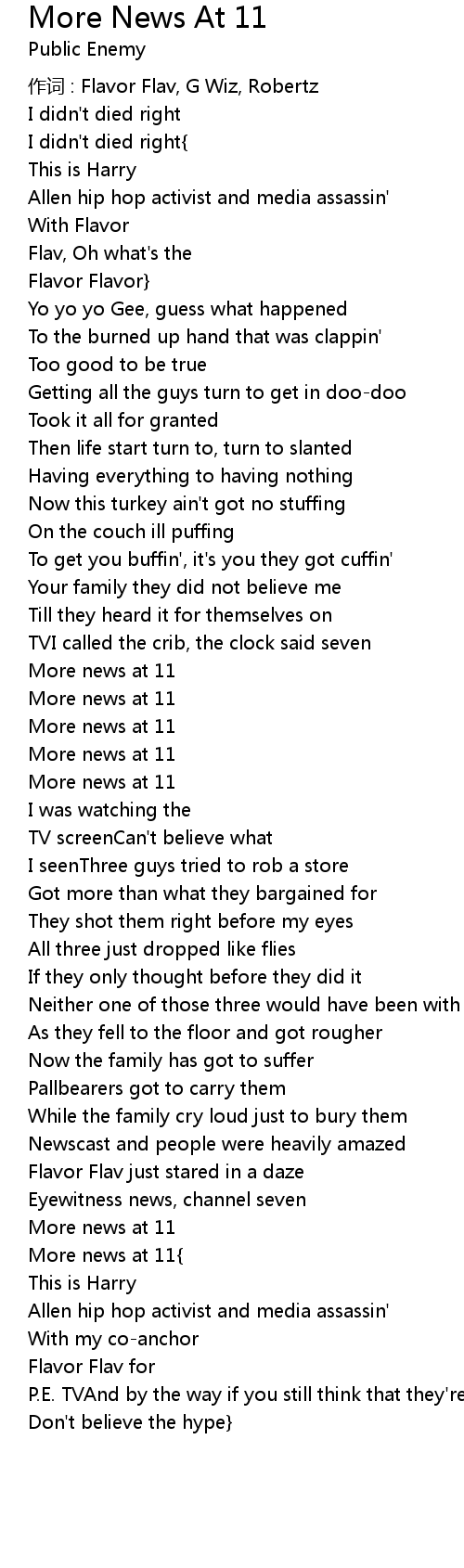 | 作词 : Flavor Flav, G Wiz, Robertz | |