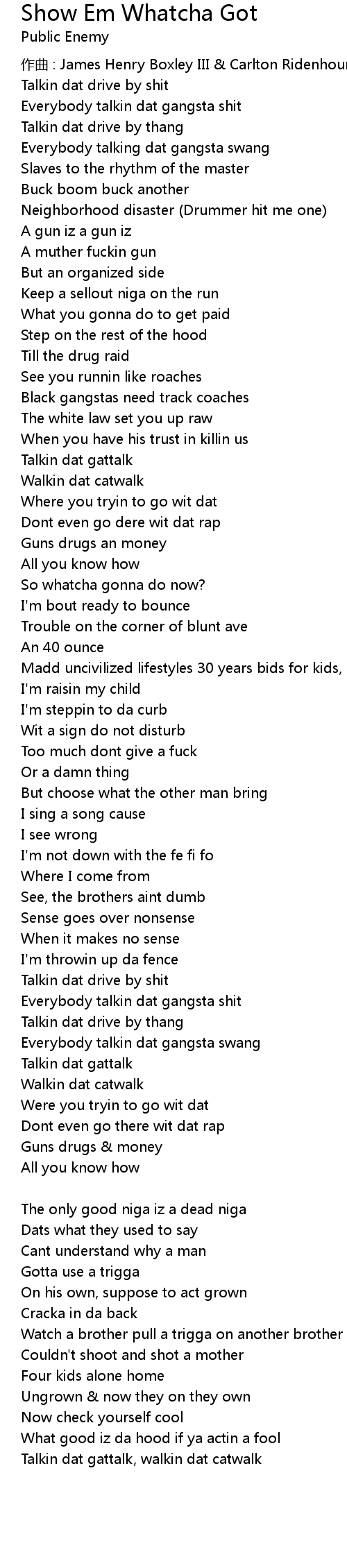 | 作曲 : James Henry Boxley III & Carlton Ridenhour & Eric Sadler | |