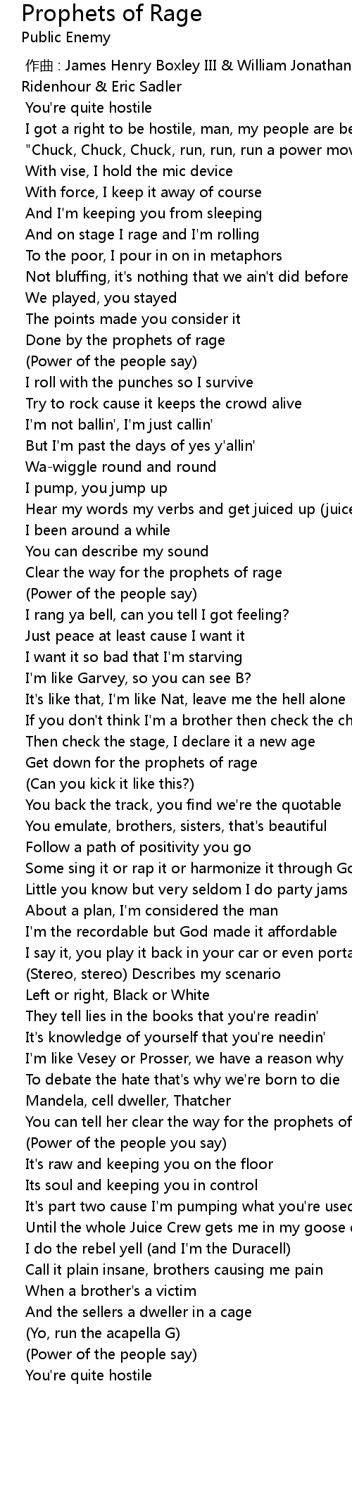 | [01:18.674] | Get down for the prophets of rage |