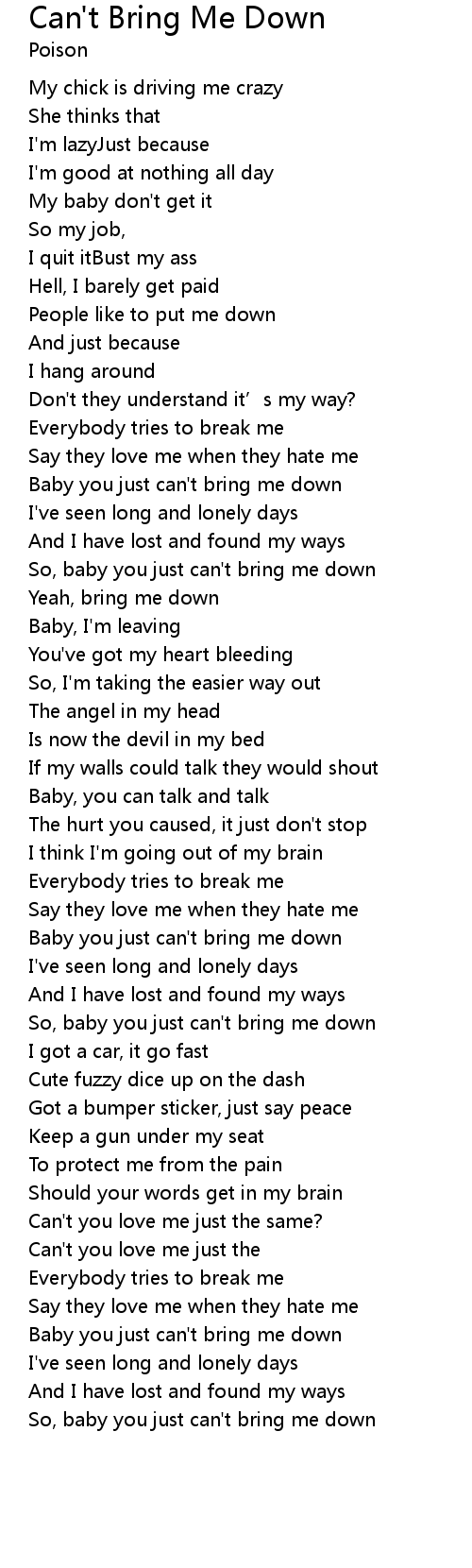 | So, baby you just can' t bring me down | |