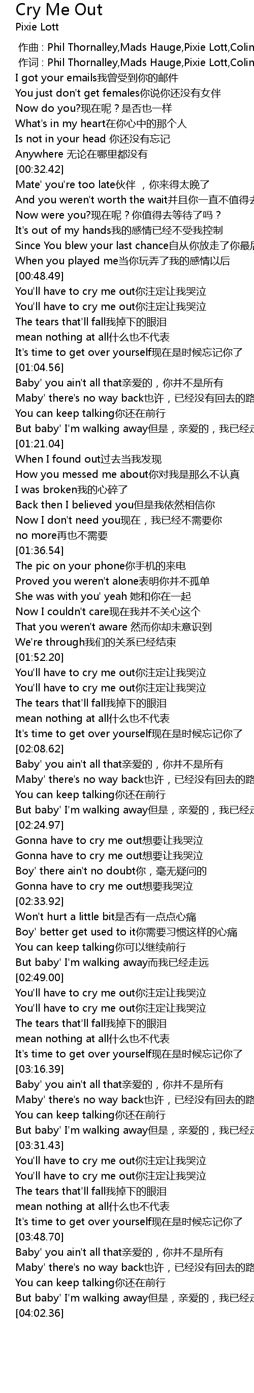 | [02:32.13] | Gonna have to cry me out想要我哭泣 |