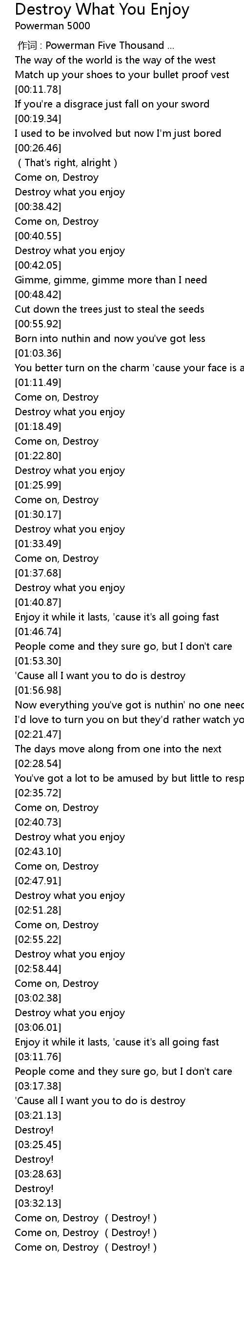 | [03:04.01] | Destroy what you enjoy |