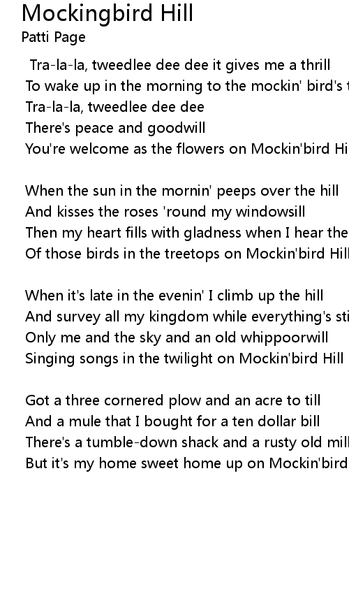 Of those birds in the treetops on Mockin'bird Hill |