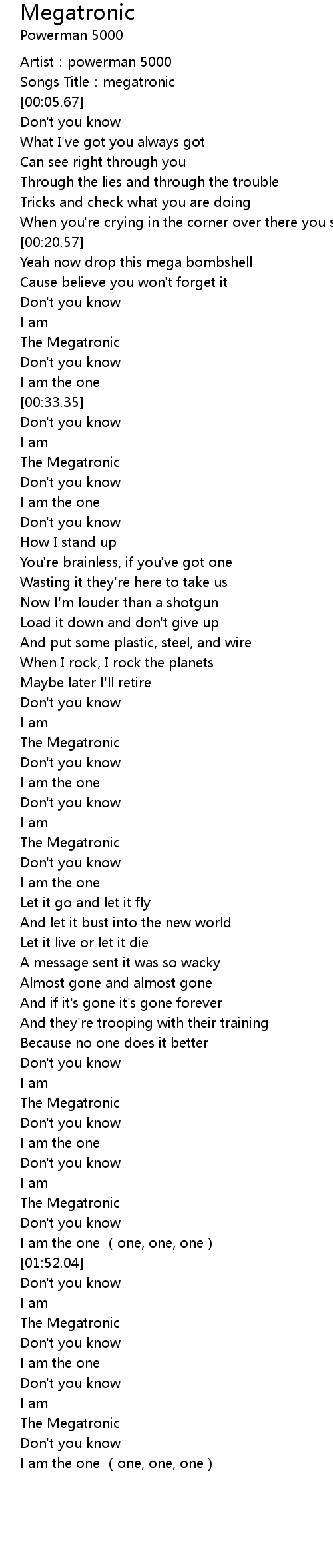 | [01:01.71] | The Megatronic |