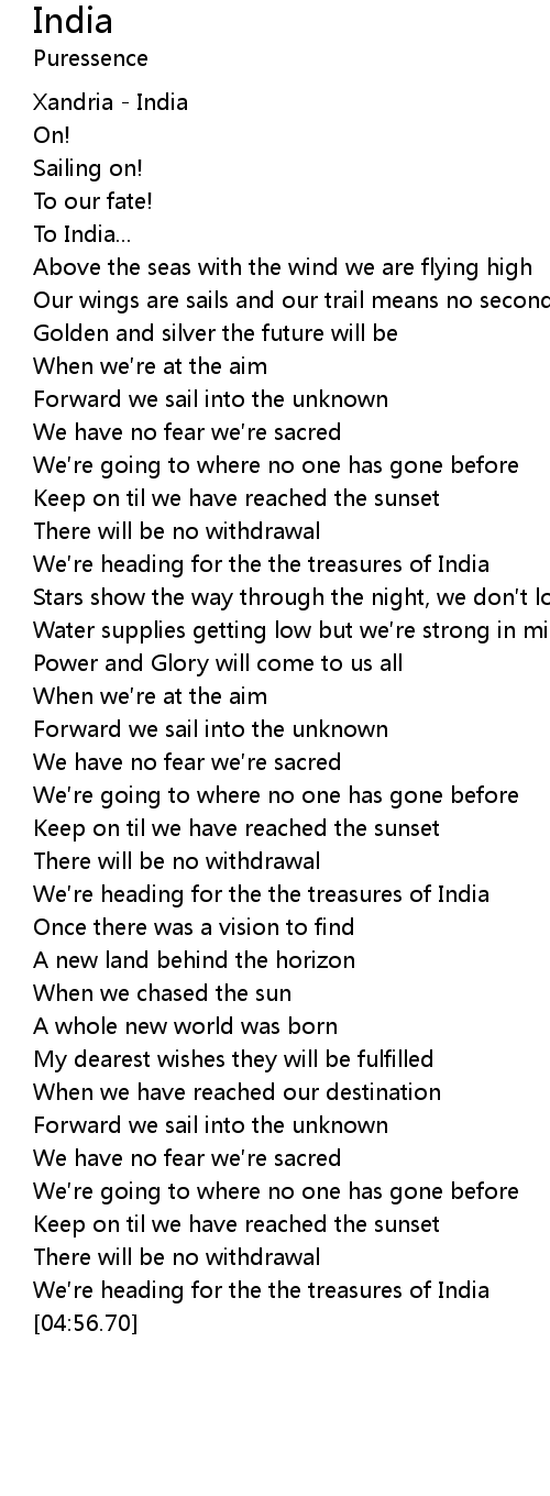 | [04:39.93] | We re heading for the the treasures of India |
