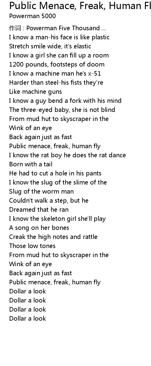 | Song | Public Menace, Freak, Human Fly |