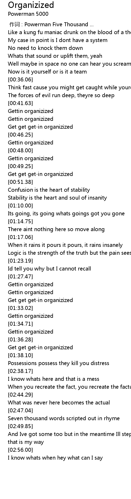 | [00:00.00] | zuò cí : Powerman Five Thousand ... |