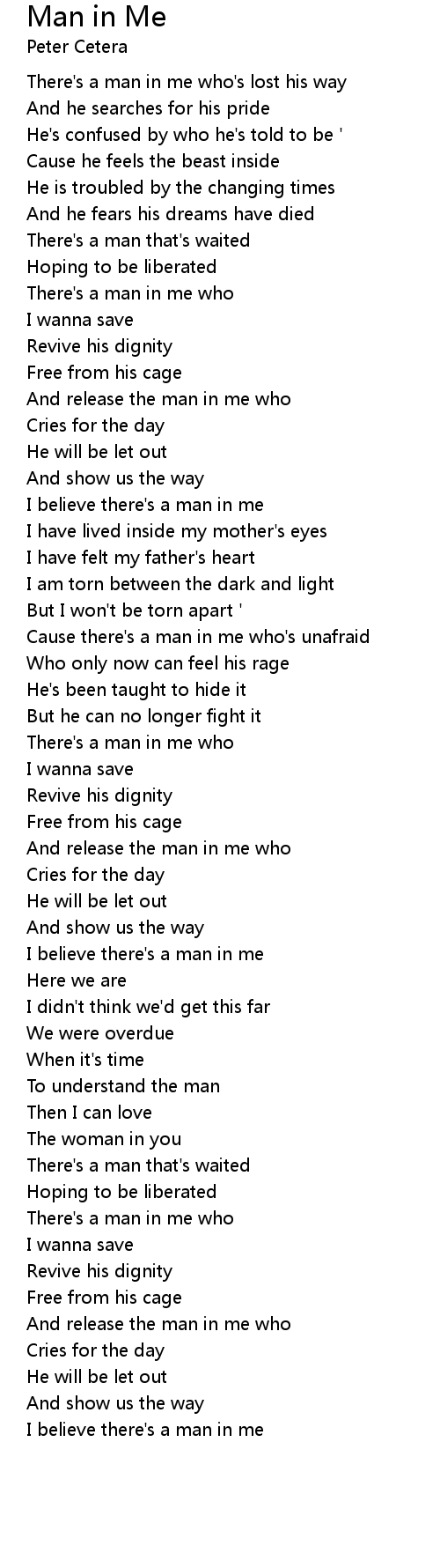 And release the man in me who |