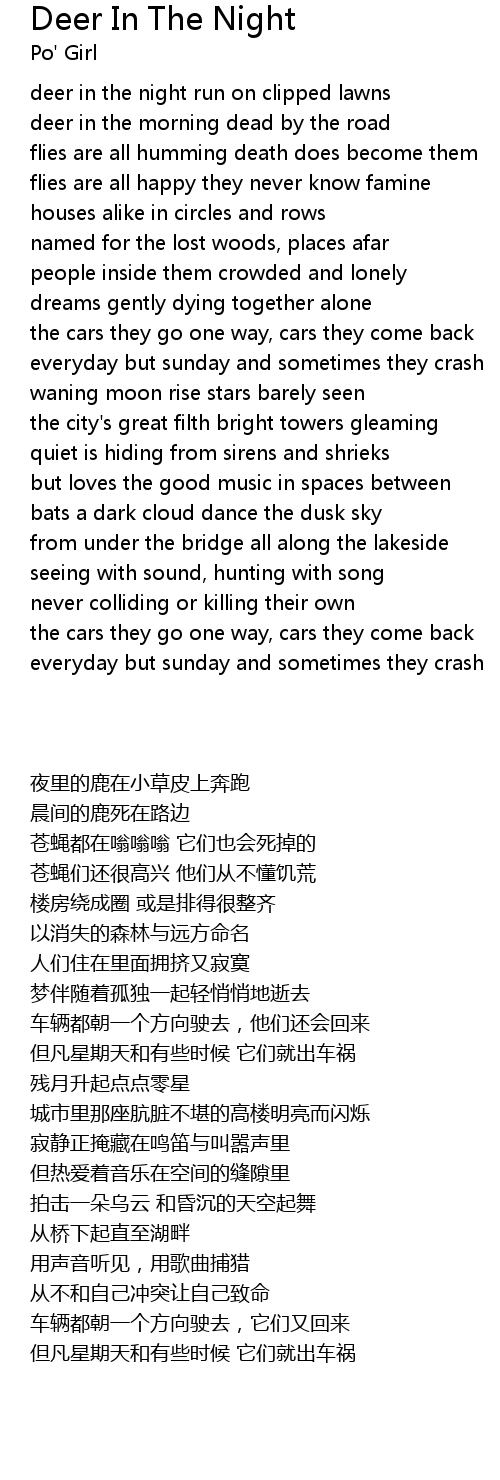 Deer In The Night Lyrics