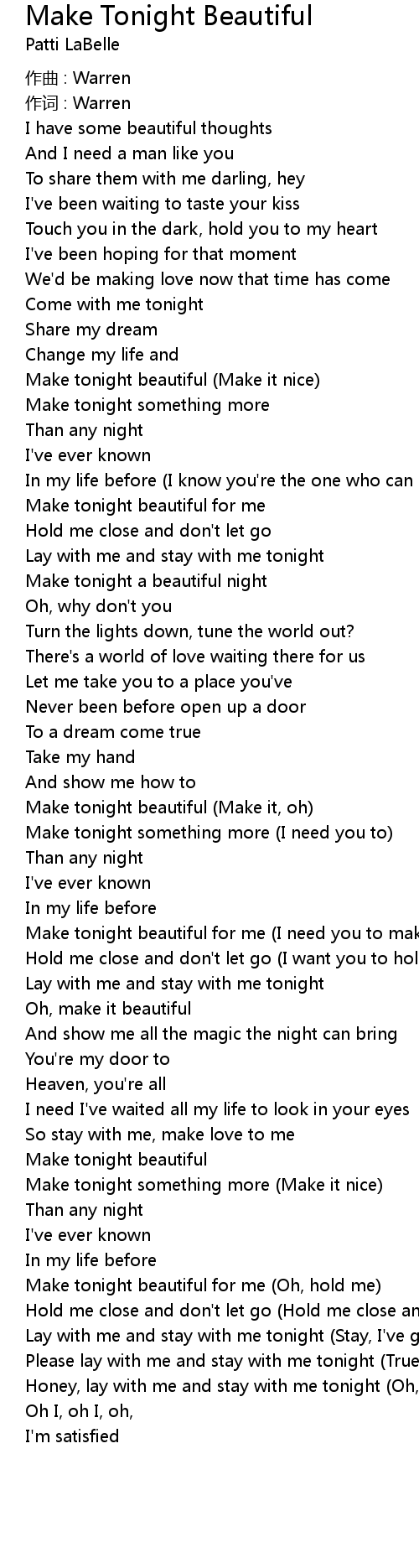 | Make tonight beautiful for me (I need you to make it nice) | |