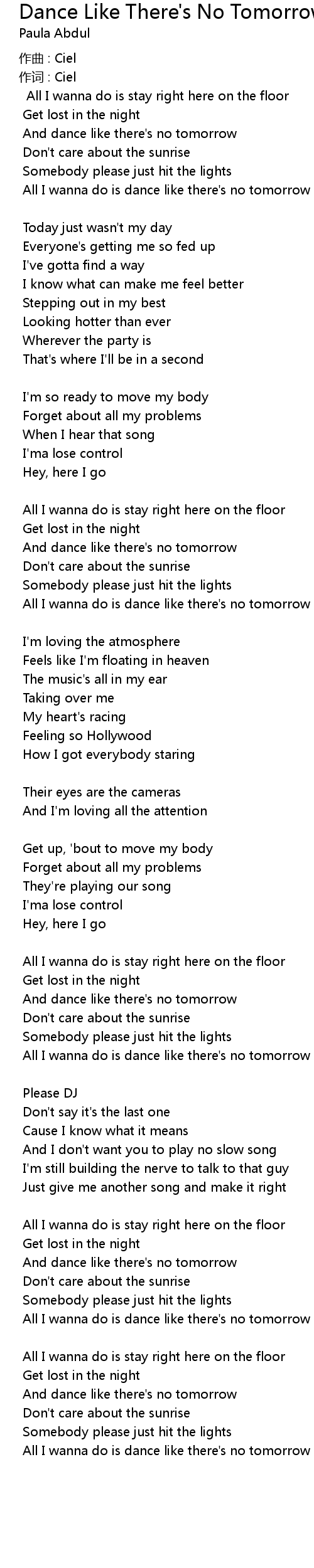 | Song | Dance Like There's No Tomorrow (Album Version) |