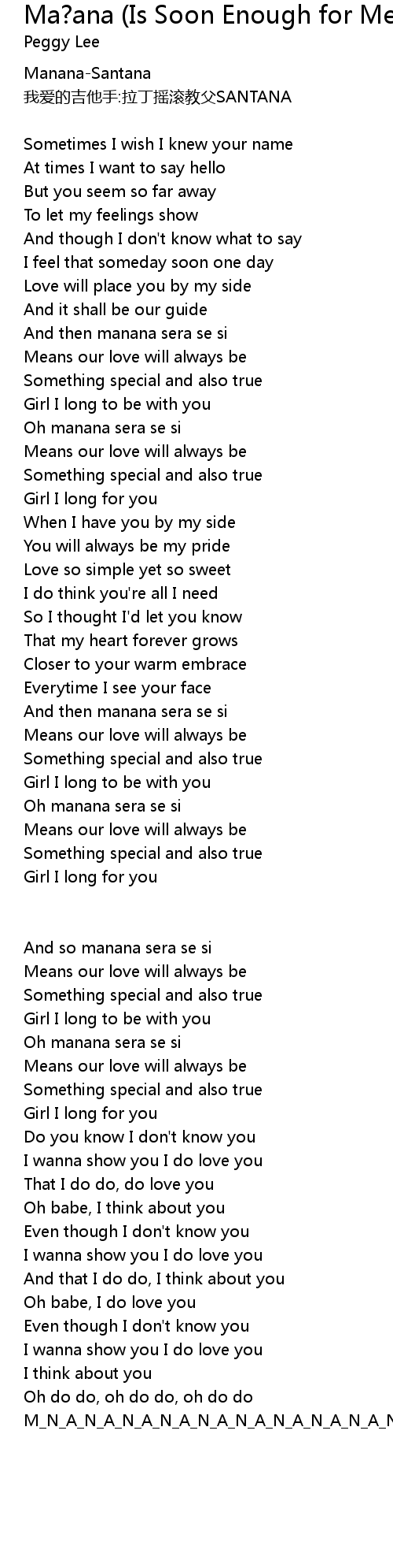 | Song | Ma?ana (Is Soon Enough for Me) |