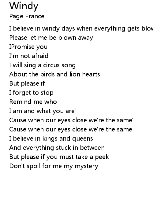| I believe in windy days when everything gets blown away oh | |