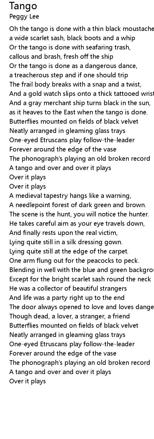 | A tango and over and over it plays | |