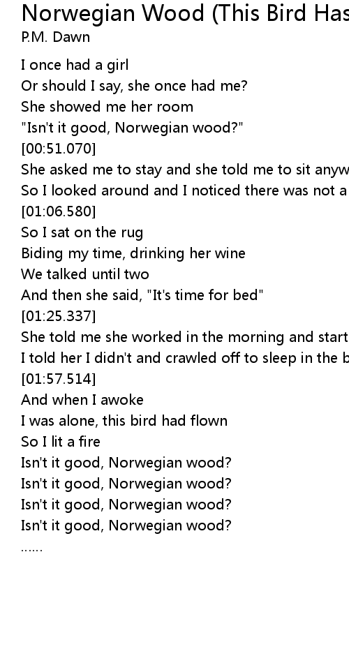 | [00:46.112] | "Isn't it good, Norwegian wood?" |