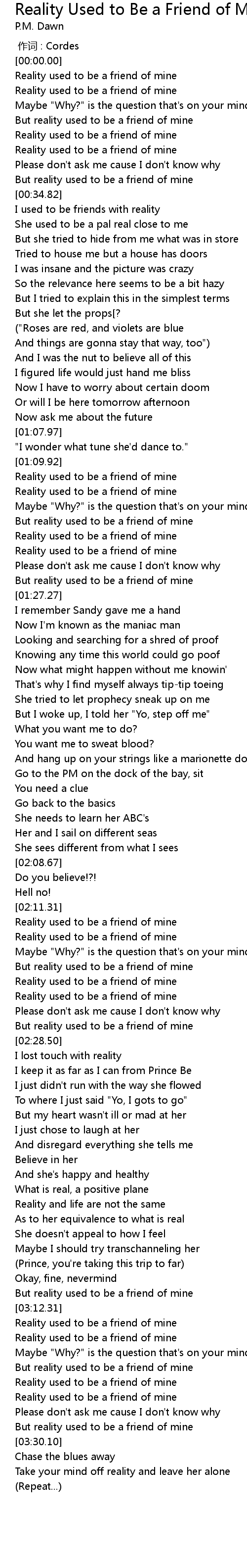 | [03:49.69] | Take your mind off reality and leave her alone |