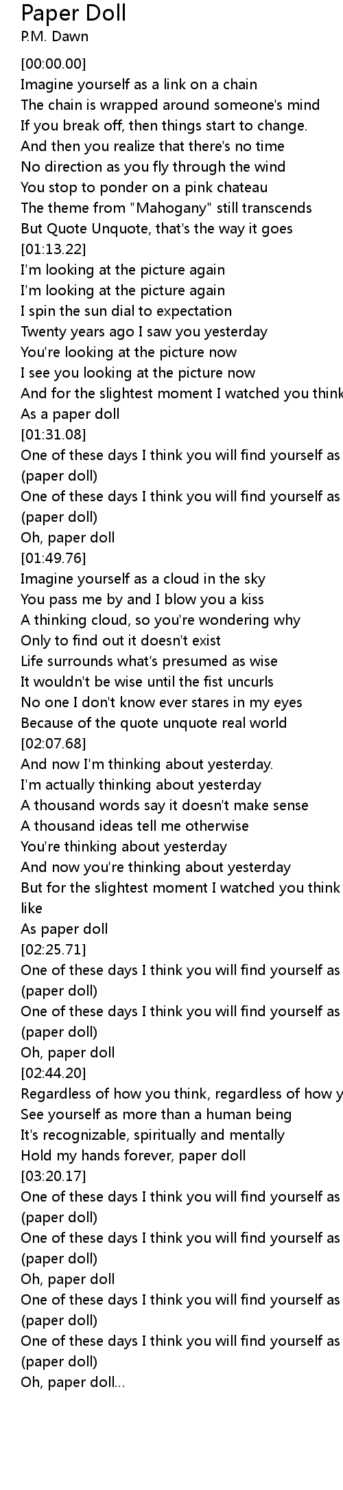 | [03:28.84] | One of these days I think you will find yourself as a paper doll, (paper doll) |