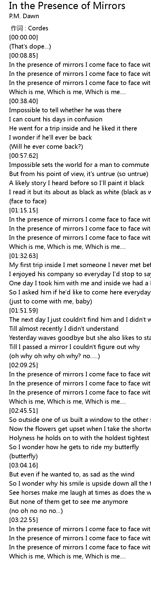 | [03:22.97] | In the presence of mirrors I come face to face with you |